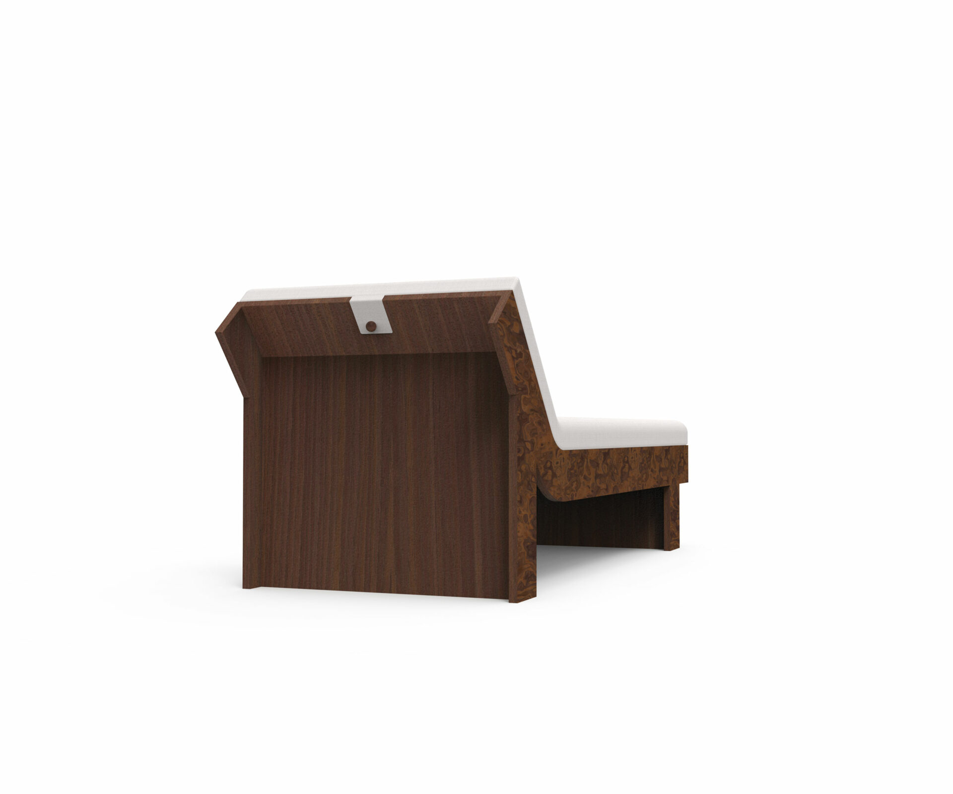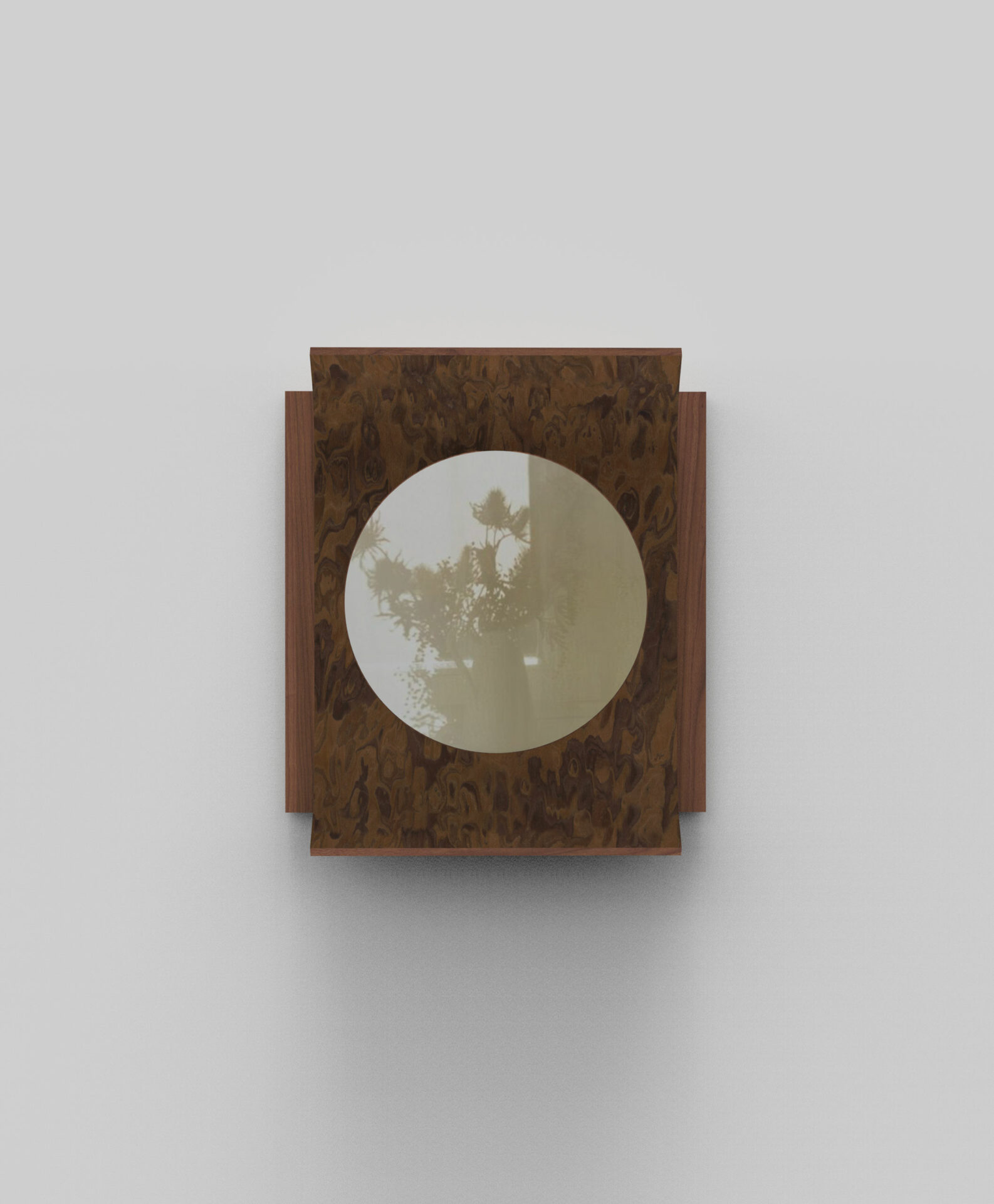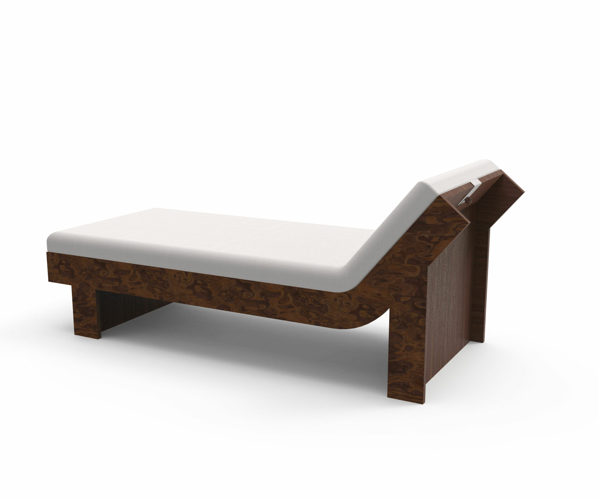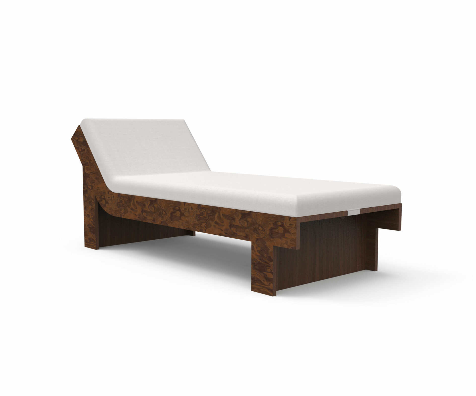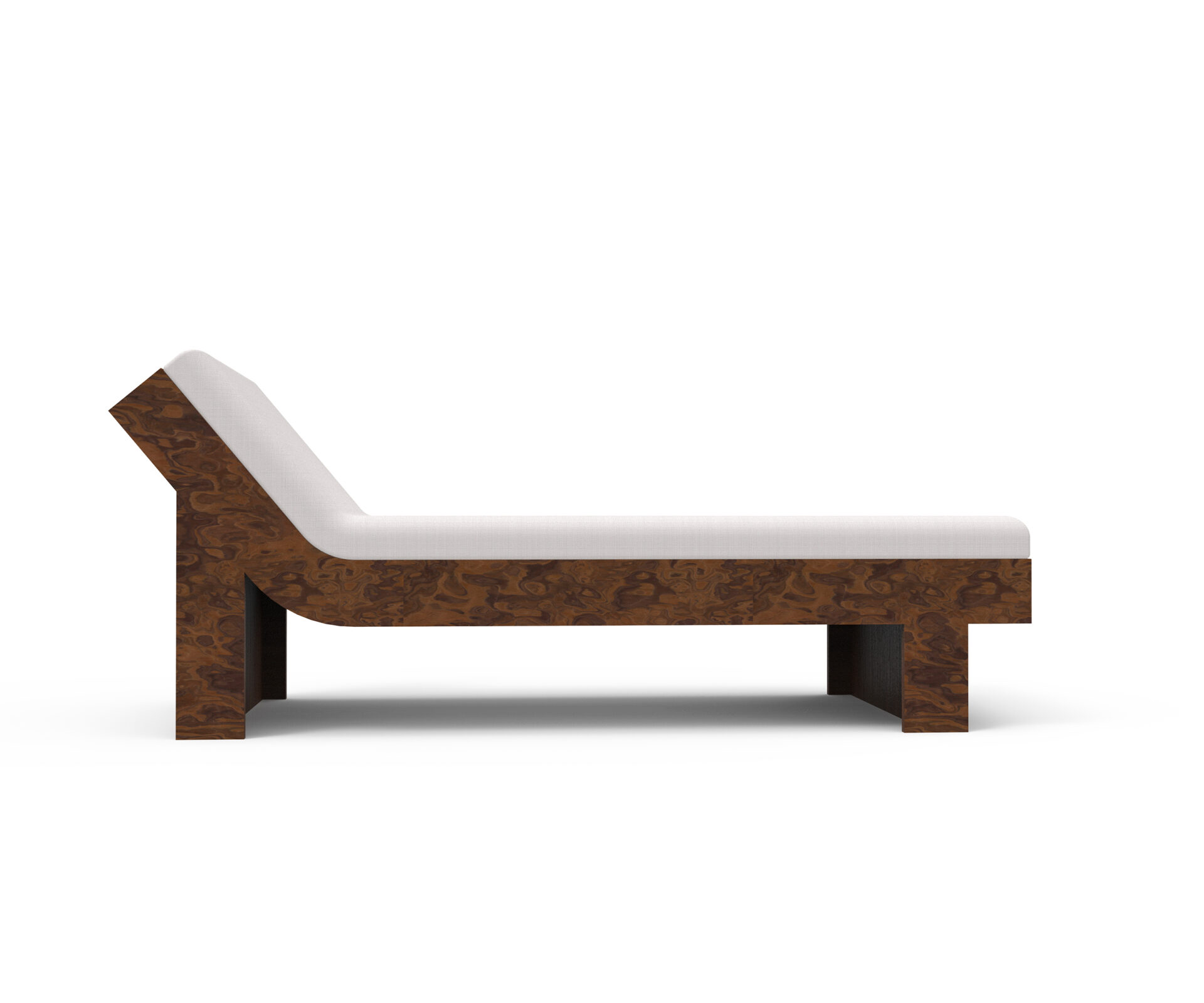 Two precious woods engage in a subtle harmony: the burl, expressive and organic, and the walnut, with its calm, straight grain.