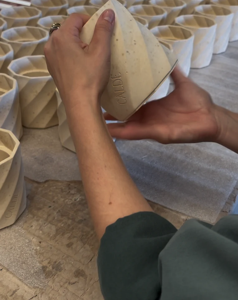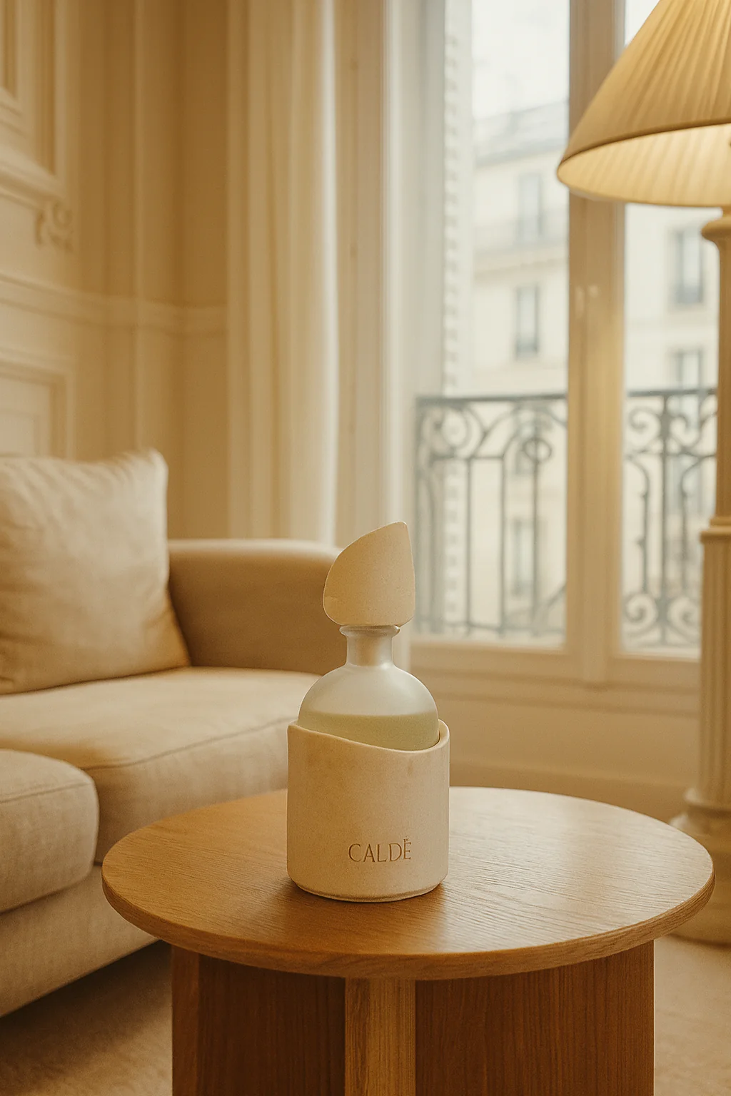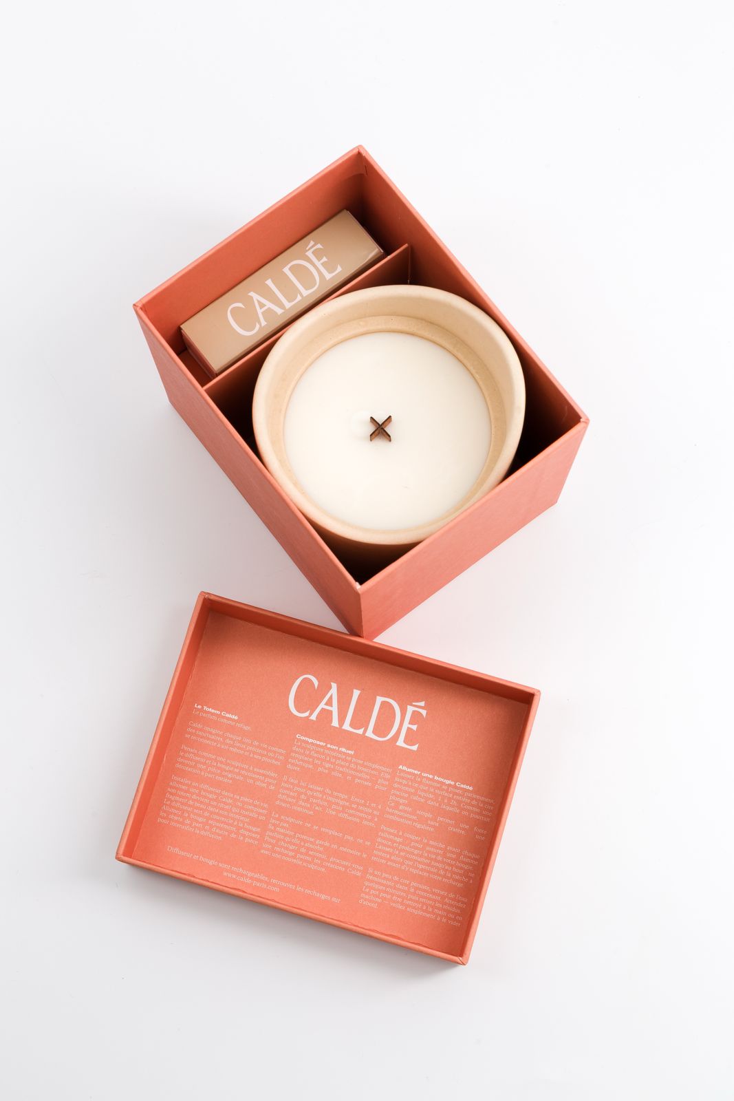 FR Pour Caldé Paris, j’ai imaginé une collection de bougies et diffuseurs de parfum conçus comme de véritables sculptures olfactives, où la simplicité des formes dialogue avec la richesse des matières.
