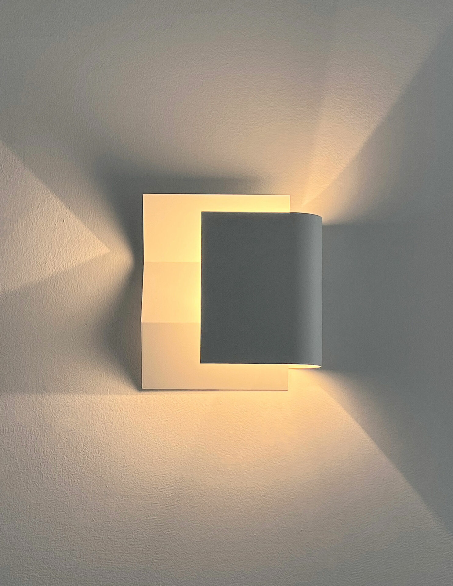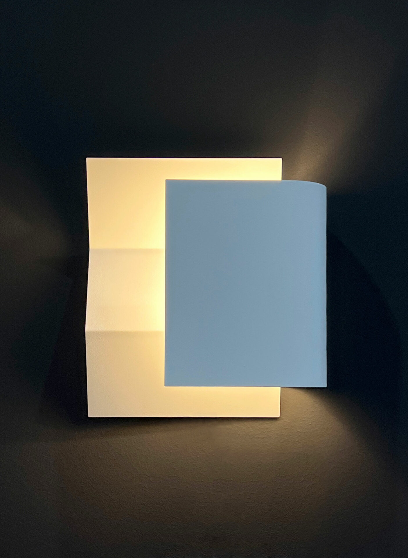 EN The ISO wall light is born from a simple gesture: the fold of an A4-sized metal sheet.